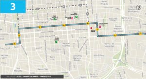 Su recorrido irá desde el departamento Caucete hacia Capital por calle 9 de Julio – Estados Unidos – Santa Fe – España – 9 de Julio, continuando su trayecto hasta la Empresa El Triunfo S.A.