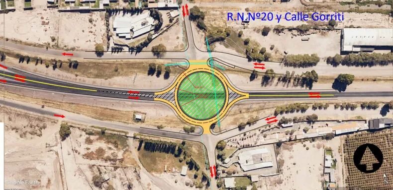 Esta rotonda moderna eliminará la congestión vehicular, mejorando la fluidez (continuidad) permanente al tránsito tanto de calle Gorriti en cualquier sentido, cómo de ruta 20 en cualquier sentido ya q la prioridad de paso es para quien circula por ella, Anulando los cruces directos de la zona y concentrandolos en dicha rotonda.
